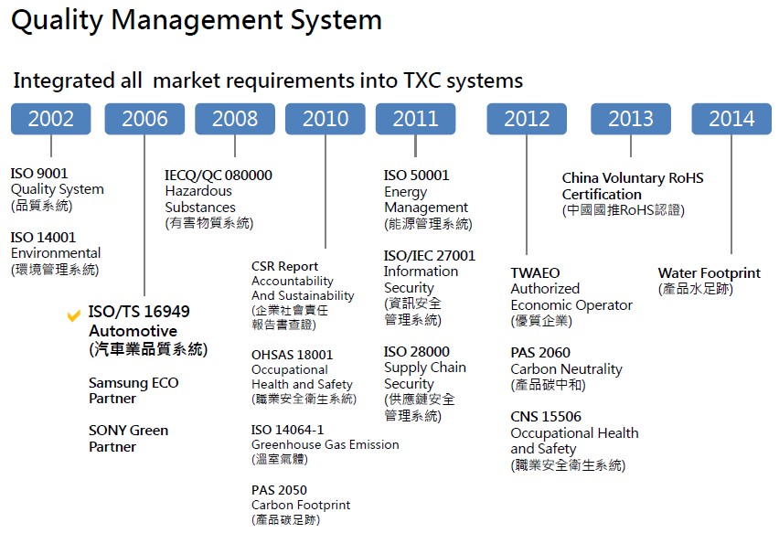 勞工職業安全衛生議題近年成為世界各國及企業關注焦點,如何做到‘降低職業災害發生、確保工作場所安全、實施員工健康管理’一直是臺灣晶技晶體"8N26070002"努力的方向,公司于2008年12月通過OHSAS18001職業安全衛生管理系統驗證,提供勞工符合系統要求的安全衛生工作環境. 若無法避免需產生或使用時,應管制單位產生量及使用量,做持續性之追蹤管制、改進并制定預防方案或是降低污染量,水電等消耗性(能)資源使用,應從系統研究改善使用效率,以達成節約能源之目標.