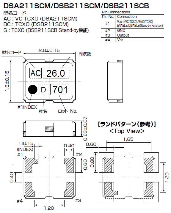 大真空DSA211SCM,壓控溫補振蕩器,貼片晶體振蕩器,具有最適合于移動通信設備用途的高穩定的頻率溫度特性.為對應低電源電壓的產品.(可對應DC +1.8 V±0.1 V to +3.2 V±0.1 V )高度:最高1.0 mm,體積:0.007 cm3,重量:0.024g,超小型,輕型.低消耗電流,"1XXC26000HBA"表面貼片型產品.(可對應回流焊) 無鉛產品.滿足無鉛焊接的回流溫度曲線要求.