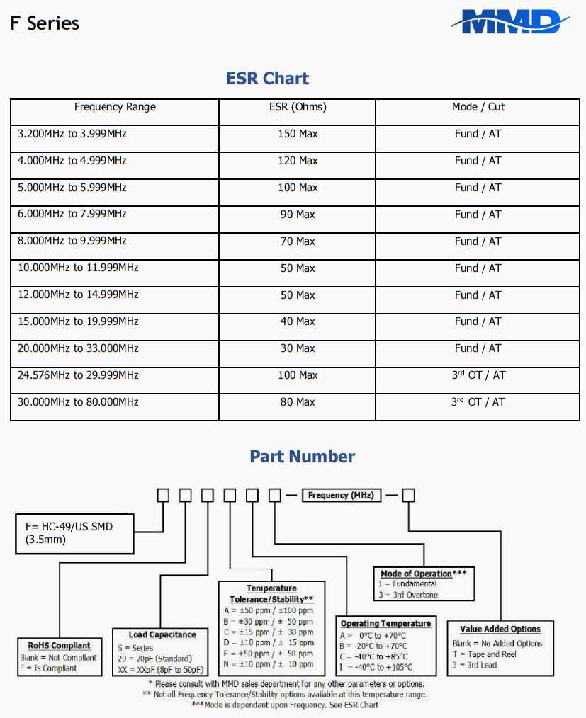 | FF20AC1-8.000MHZ-T | MMD | F | -40°C ~ 85°C | 8 MHz | ±100ppm | ±50ppm | 20 pF |