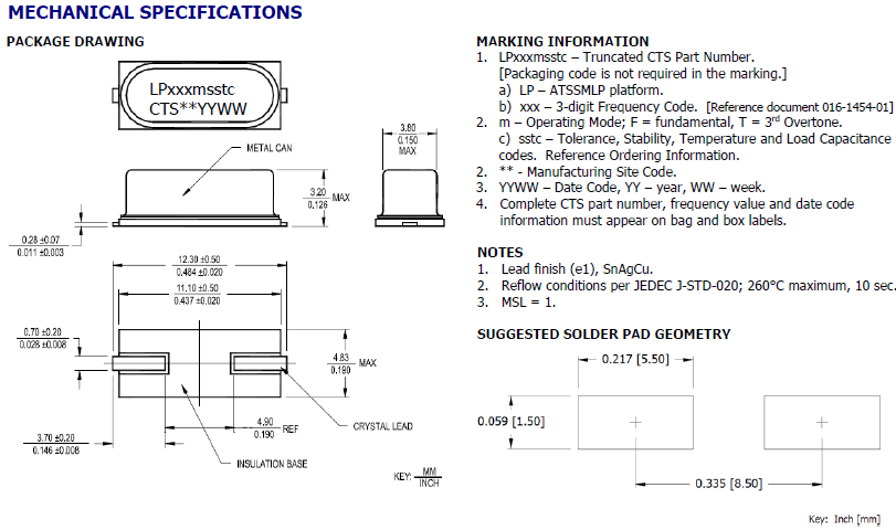 CTS晶振,貼片晶振,ATS-ATSSMLP晶振,石英水晶振子C化學制劑 / pH值環境:請勿在PH值范圍可能導致腐蝕或溶解石英晶振或包裝材料的環境下使用或儲藏這些產品。