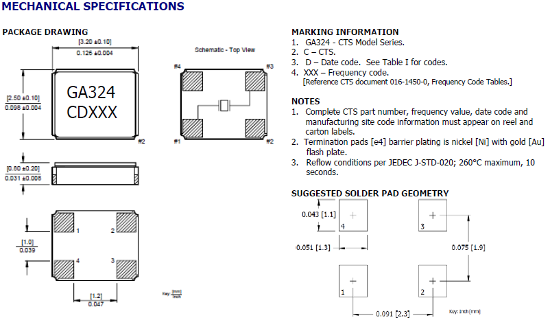 CTS晶振,貼片晶振,GA324晶振,石英晶體為了獲得穩定的振蕩電路中,IC的負電阻的值必須小于?200Ω時的晶振電阻值是40Ω。負阻“的標準來評估一個振蕩電路的質量。在某些情況下,例如老化,熱變化,電壓變化,以及等等,電路可能不會產生振蕩的“Q”值是低的。