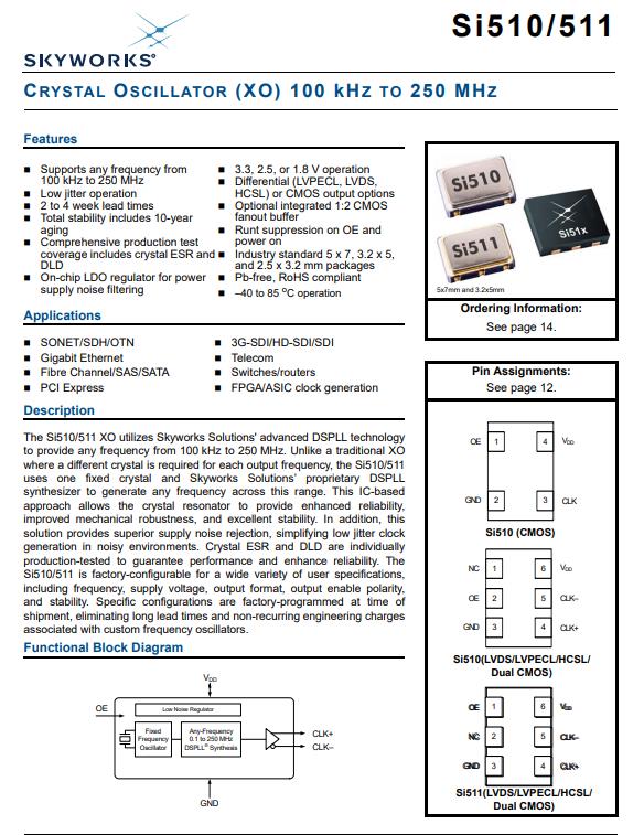 應用:SONET/SDH/OTN,千兆以太網,光纖通道/SAS/SATA,PCI,Express,3G-SDI/HD-SDI/SDI,電信,交換機/路由器,FPGA/ASIC時鐘生成.