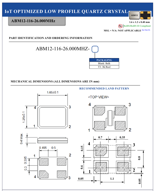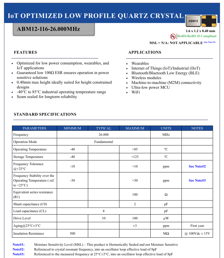 晶振撬動(dòng)智能新時(shí)代當(dāng)可穿戴設(shè)備精準(zhǔn)監(jiān)測(cè)健康數(shù)據(jù),當(dāng)物聯(lián)網(wǎng)設(shè)備實(shí)現(xiàn)遠(yuǎn)程智能控制,當(dāng)藍(lán)牙模塊無(wú)縫傳輸信息,這些智能場(chǎng)景的背后,都離不開一個(gè)核心元器件——晶振.美國(guó)艾博康(Abracon晶振)推出的ABM12-116-26.000MHZ-T3晶振,以其卓越性能成為低功耗智能設(shè)備的“心臟”,彰顯著方寸之間的科技力量.