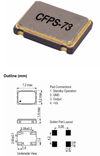 更多>>CFPS-73陶瓷封裝的標準7050mm晶體振蕩器