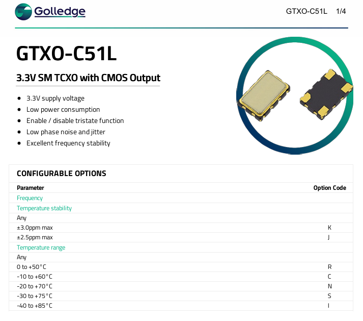 | MP02962 | Golledge | 27.0MHz GTXO-C51L/JS SM CMOS TCXO | GTXO-C51L | 3.3V | ±2.5ppm | -30°C ~ 75°C | 4 | 5032 |
