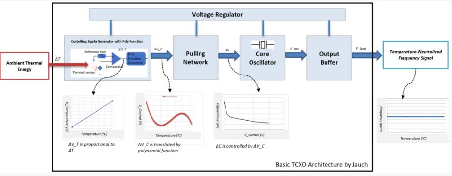 在下文中,將通過仔細研究TCXO的基本架構來詳細解釋TCXO的功能.通常,TCXO由五個功能塊組成(圖2),