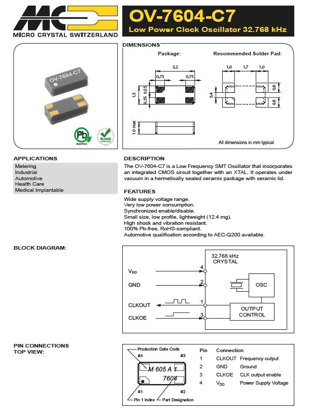 | OV-7604-C7-32.768kHz-20PPM-TB-QC | Micro晶振 | 標準時鐘振蕩器 32.768 kHz +/-20 PPM -40/+125C |