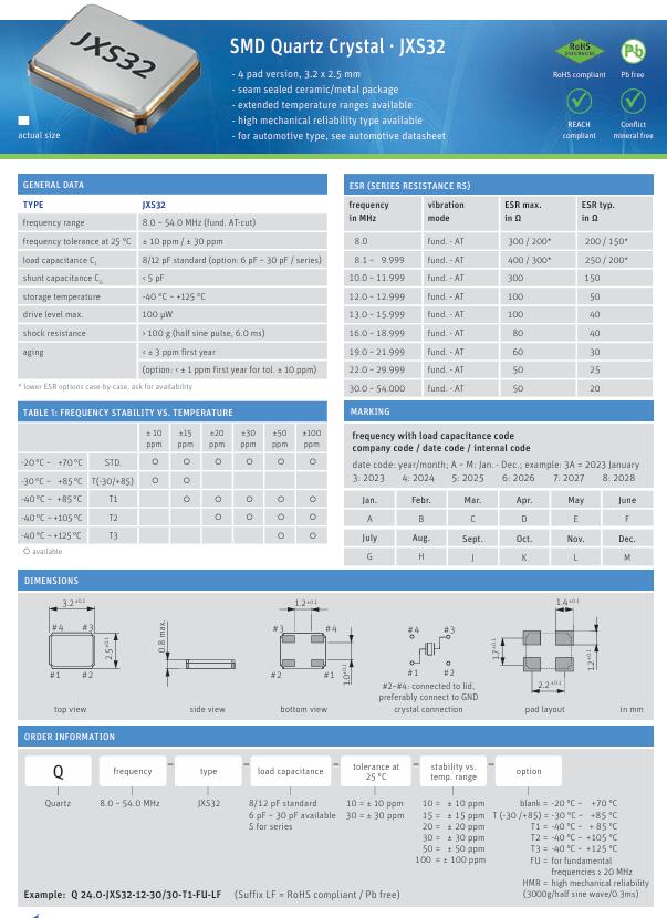 首頁企業博客 Q 26.0-JXS32-10-10/10-FU-WA-LF 3225 26M 10PF 10PP無源晶振Jauch