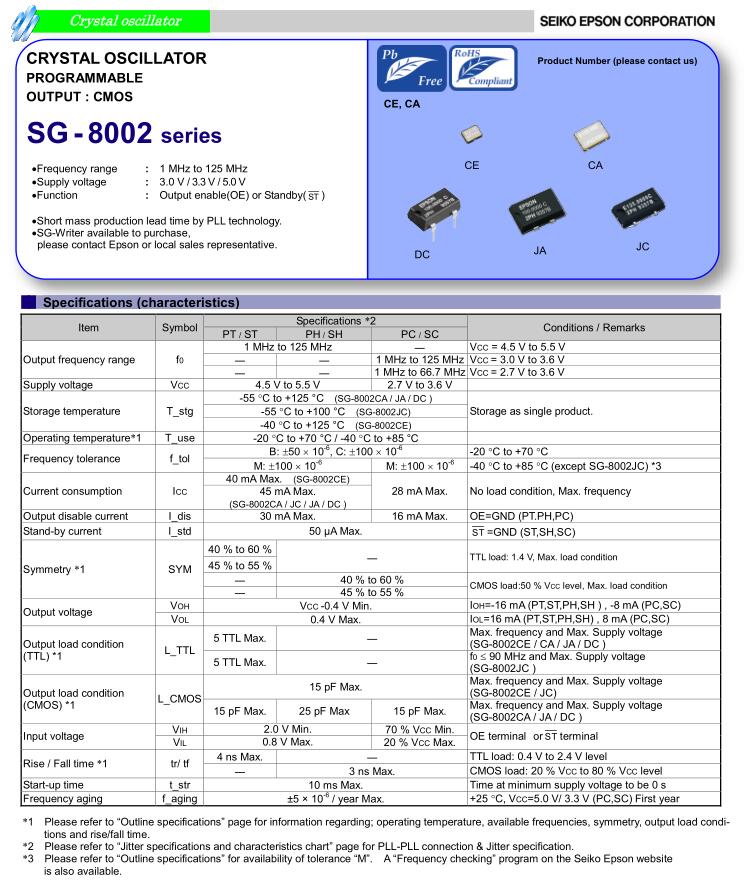 | SG-8002JA 8.000000MHz PHC | Q3306JA21001000 | 8.000000MHz | +/-100 ppm |
