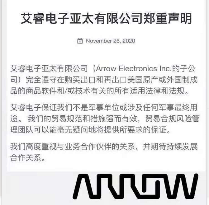 艾睿亞太在亞洲,在中國都是重要的IC和溫補晶振分銷商.美國重點關照艾睿,后面或針對大陸分銷代理商進一步動作,因為國內芯片進出口多通過代理分銷商.