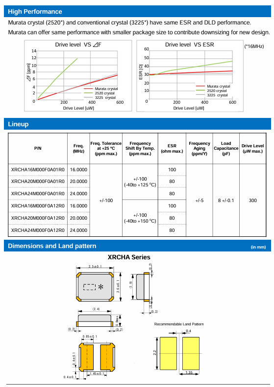 更多>>XRCHA16M000F0A12R0日本村田車規晶振2520 16M 8PF